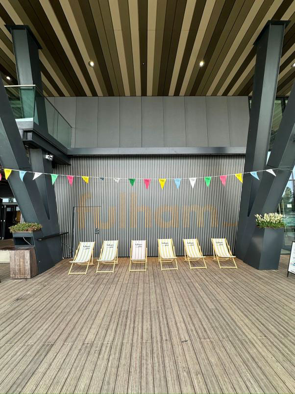 Craven Cottage, London, presented a complex feature cladding brief requiring precision, bespoke detailing, and careful coordination with long-lead materials. Bamboo Facade Installations delivered a tailored entrance cladding solution incorporating timber-effect hydro-dipped lettering and Knotswood UK battens to achieve a refined shuttering aesthetic.